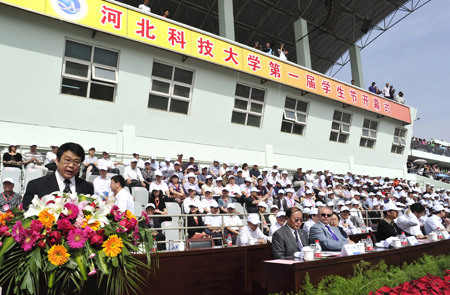 | 22日上午9時(shí)河北科技大學(xué)第一屆學(xué)生節(jié)開幕式在新校區(qū)主體育場(chǎng)隆重舉行,河北省委副書記付志方出席開幕式并宣布學(xué)生節(jié)開幕,省人大副主任馬蘭翠,政協(xié)副主席王剛及國家教育部,中國城市規(guī)則設(shè)計(jì)研究院,河北省國資委教育廳、文化廳、省考試院的主要領(lǐng)導(dǎo)在主席臺(tái)前臺(tái)就座,開幕式由河北科技大學(xué)黨委書記衛(wèi)舸主持。校長李強(qiáng)代表高校黨政領(lǐng)導(dǎo)班子致歡迎詞。 我公司做為河北科技大學(xué)的教育教學(xué)實(shí)習(xí)基地,公司總經(jīng)理劉占查應(yīng)邀參加了開幕式,并在主席臺(tái)就座。上午10點(diǎn)30分公司總經(jīng)理參加了大學(xué)組織的企業(yè)家座談會(huì),就今后加強(qiáng)校企進(jìn)一步合作、共謀發(fā)展與高校領(lǐng)導(dǎo)進(jìn)行了坦誠友好的交流。